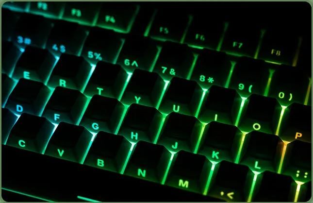 Phần đèn nền RGB động vẫn vô cùng đa dạng với 20 hiệu ứng ánh sáng được tích hợp sẵn trong bàn phím để có thể tùy chỉnh trên bàn phím hoặc kết nối với phần mềm. Tuy nhiên phần thân vỏ không in hình nhân vật cầu kỳ, đặc biệt là mặt phím để trơn cho cảm giác tối gian, nhẹ nhàng. Mặt sau in các hình tối giản trang trí.