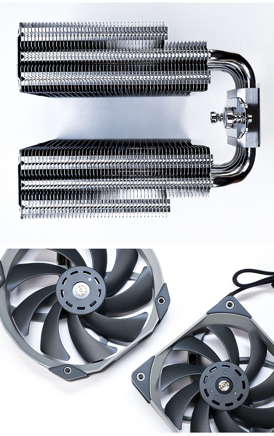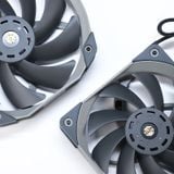 Không chỉ khác biệt về thiết kế mà Tản nhiệt khí Thermalright Frost Commander 140 còn được trang bị hai quạt tản với kích thước và thông số hơi khác nhau nhằm tăng hiệu quả tản nhiệt. Trong khi quạt to TL-D14X với kích thước 140mm x 152mm x 27mm và tốc độ định mức 1800RPM được lắp đặt phía trong (giữa 2 cánh tản) thì quạt TL-C12 Pro-G với kích thước là 120mm x 120mm x 25mm và tốc độ định mức 1850RPM lại được lắp đặt phía ngoài nhằm bổ trợ giúp hiệu quả tản nhiệt tốt hơn. Cả hai đều sử dụng đầu nối quạt điều khiển 4 chân cho phép điều khiển tốc độ chính xác, vòng bi S-FDB đảm bảo hoạt động yên tĩnh, lâu dài.