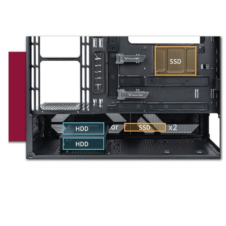 Với thiết kế mở và kích thước lớn, nên VỎ CASE PC VALKYRIE VK03 CASE LCD BLACK hoàn toàn có thể lắp đặt tốt các bộ phận hay linh kiện đời mới nhất hiện nay như các loại Mainboard: ATX, M-ATX, ITX, hỗ trợ cắm ngược M-ATX/ATX. Chiều cao tản nhiệt nước cho CPU lên đến 180mm. Chiều dài Card màn hình đời cao đến 440mm và chiều dài nguồn cấp là 220mm. Với 7 cắm PCI-E, 2 khe cắm ổ HDD 3.5 inch và 3 khe cắm SSD 2.5inch người dùng không bao giờ sợ thiếu chỗ khi nâng cấp máy.