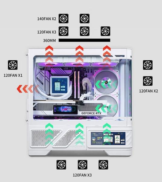 - Hỗ trợ tản nhiệt nước mặt nguồn: Loại 3 quạt 120mm
